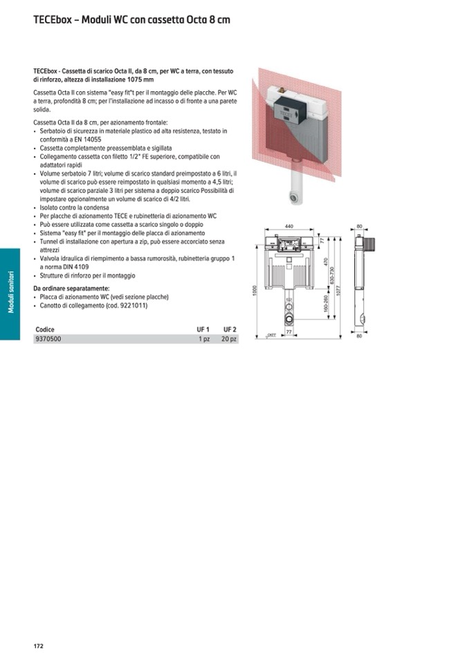 TECEbox - Cassetta di scarico Octa II, da 8 cm, per WC a terra, con tessuto