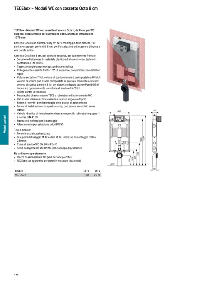 TECEbox - Modulo WC con cassetta di scarico Octa II, da 8 cm, per WC