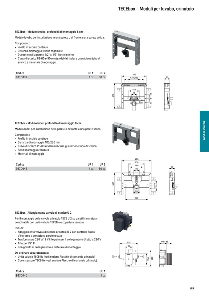 • Unità valvola TECEfilo (vedi sezione Placche di comando orinatoio)