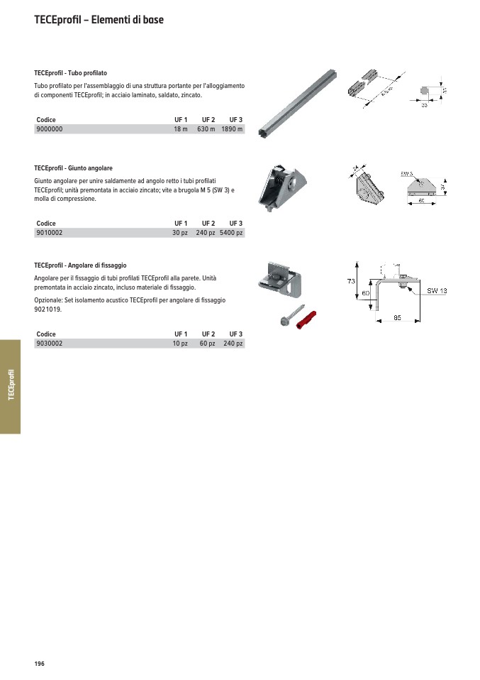 Angolare per il fissaggio di tubi profilati TECEprofil alla parete. Unità