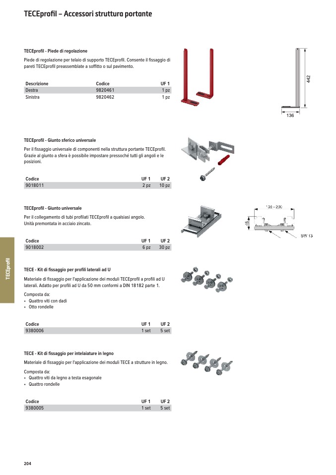 Per il fissaggio universale di componenti nella struttura portante TECEprofil.