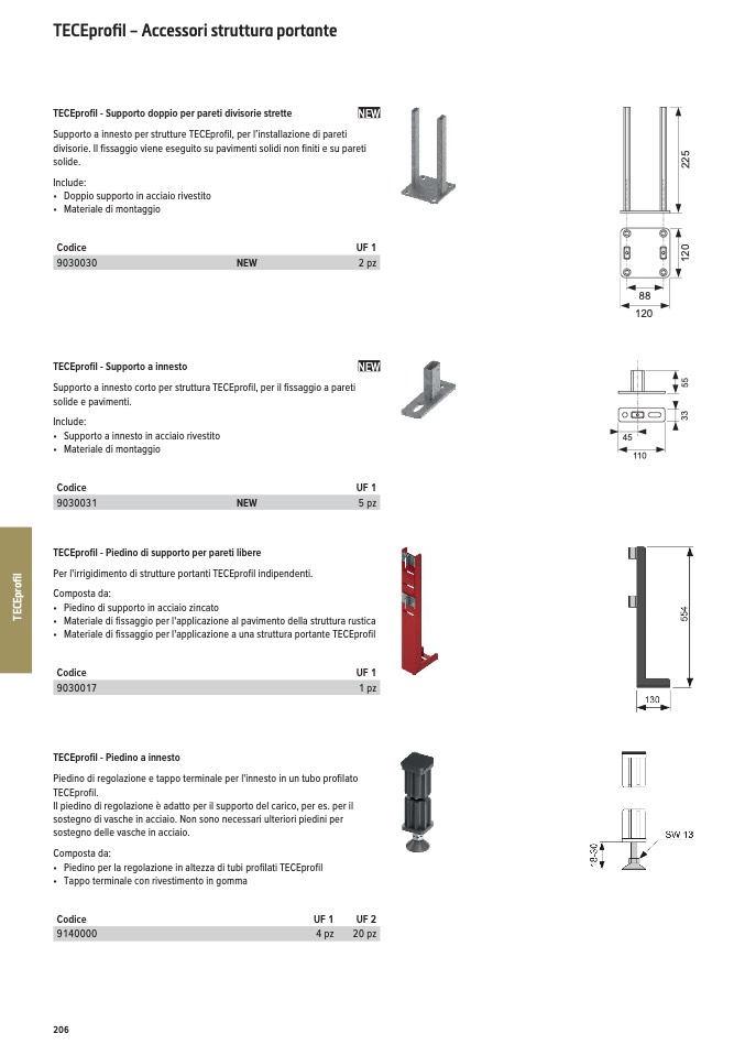 Supporto a innesto per strutture TECEprofil, per l’installazione di pareti