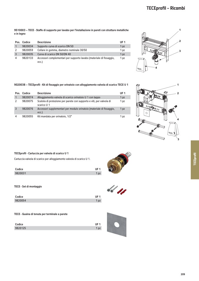 9020038 – TECEprofil - Kit di fissaggio per orinatoio con alloggiamento valvola di scarico TECE U 1