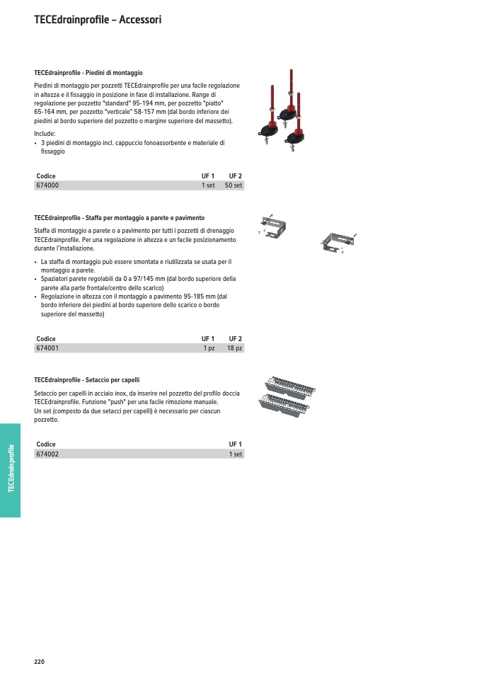 TECEdrainprofile - Piedini di montaggio