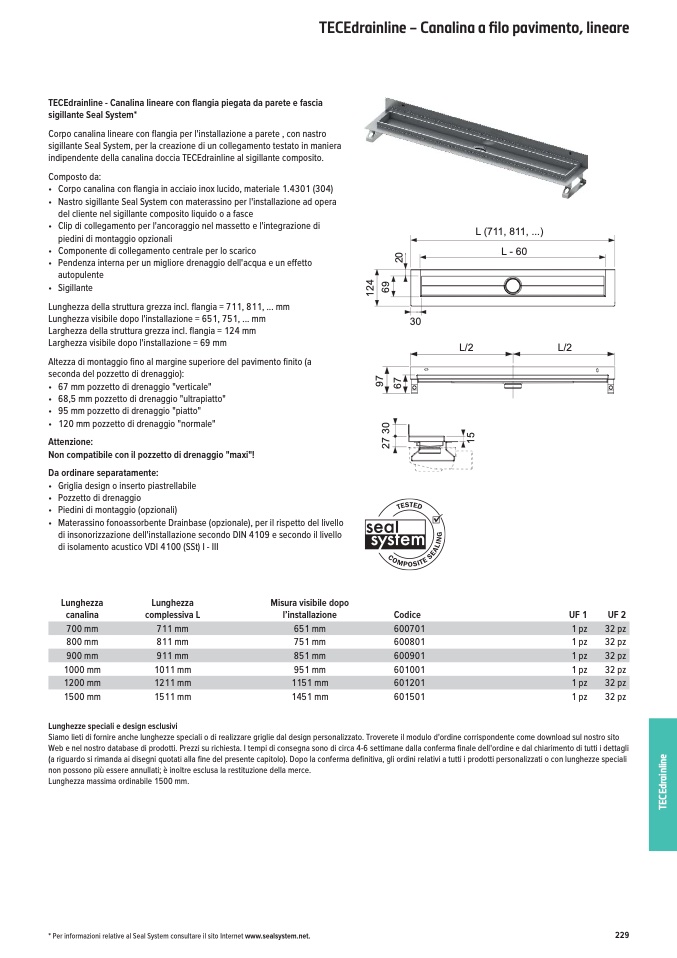 * Per informazioni relative al Seal System consultare il sito Internet www.sealsystem.net.
