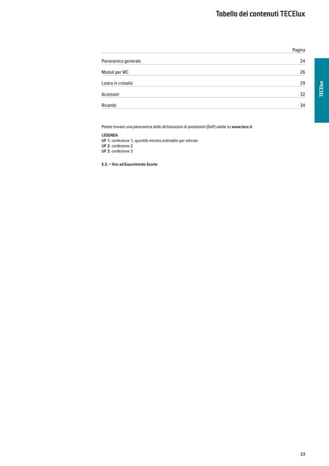 Potete trovare una panoramica delle dichiarazioni di prestazioni (DoP) valide su www.tece.it.