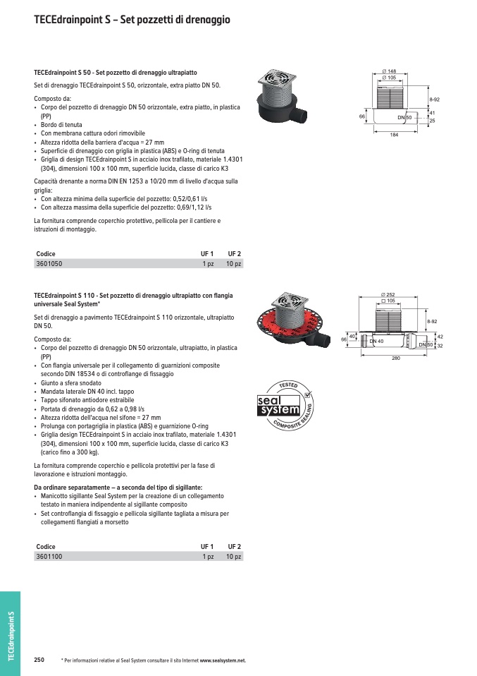 * Per informazioni relative al Seal System consultare il sito Internet www.sealsystem.net.