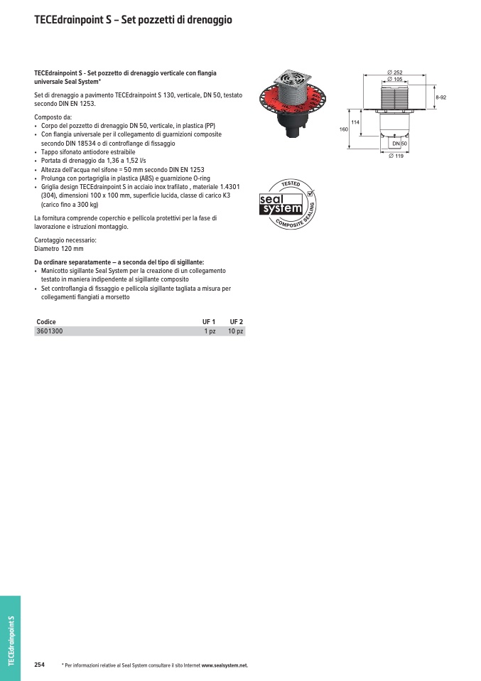 * Per informazioni relative al Seal System consultare il sito Internet www.sealsystem.net.