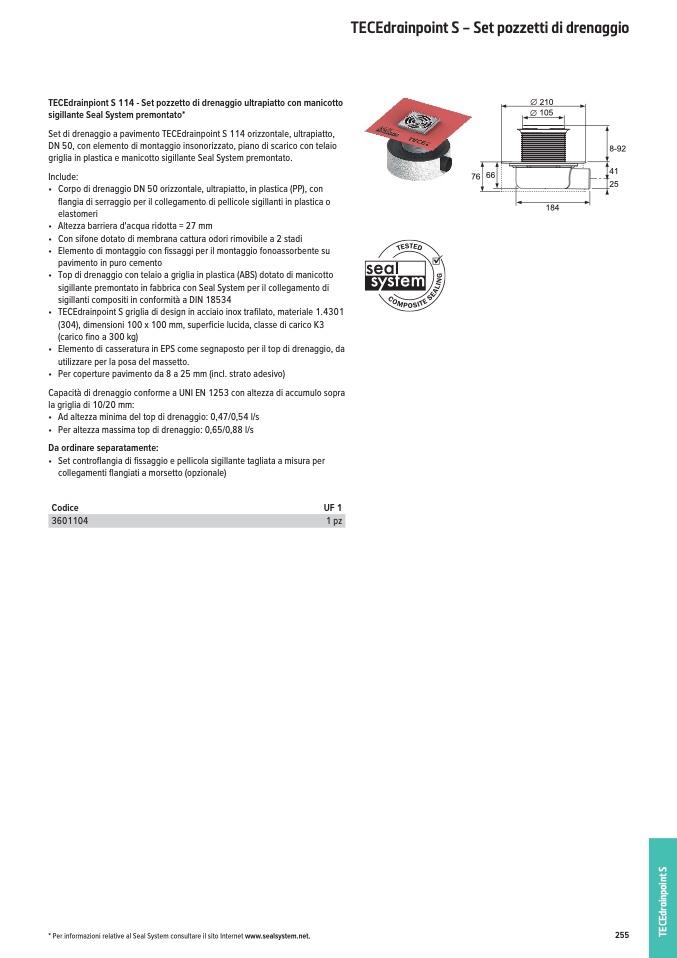 * Per informazioni relative al Seal System consultare il sito Internet www.sealsystem.net.