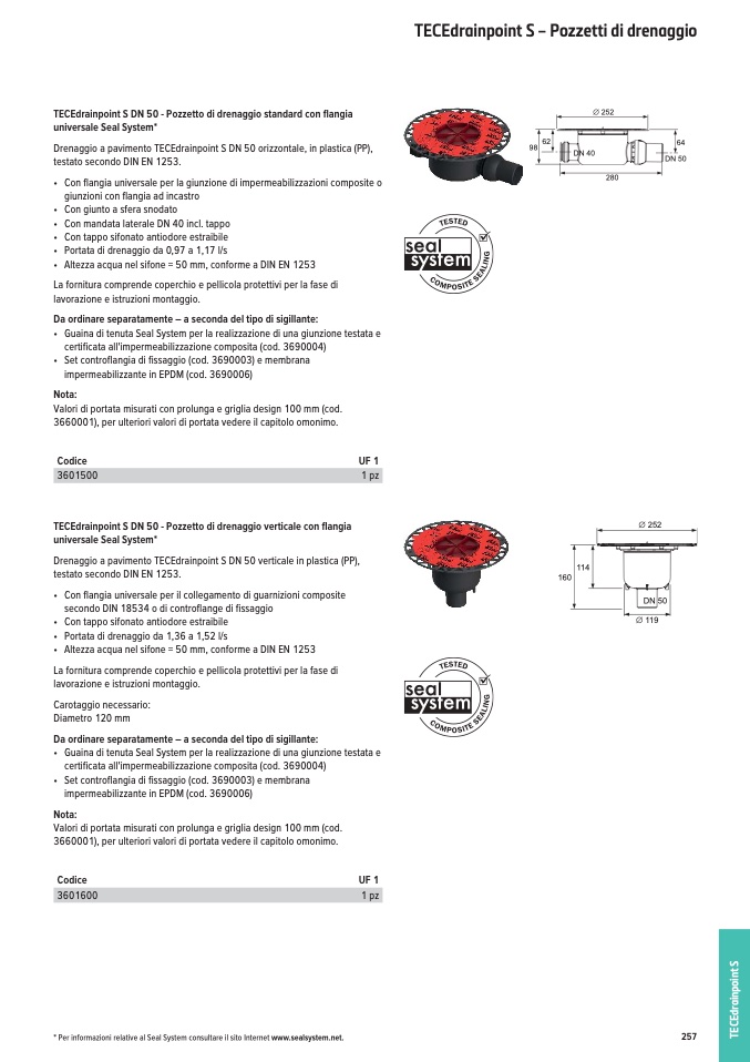 * Per informazioni relative al Seal System consultare il sito Internet www.sealsystem.net.