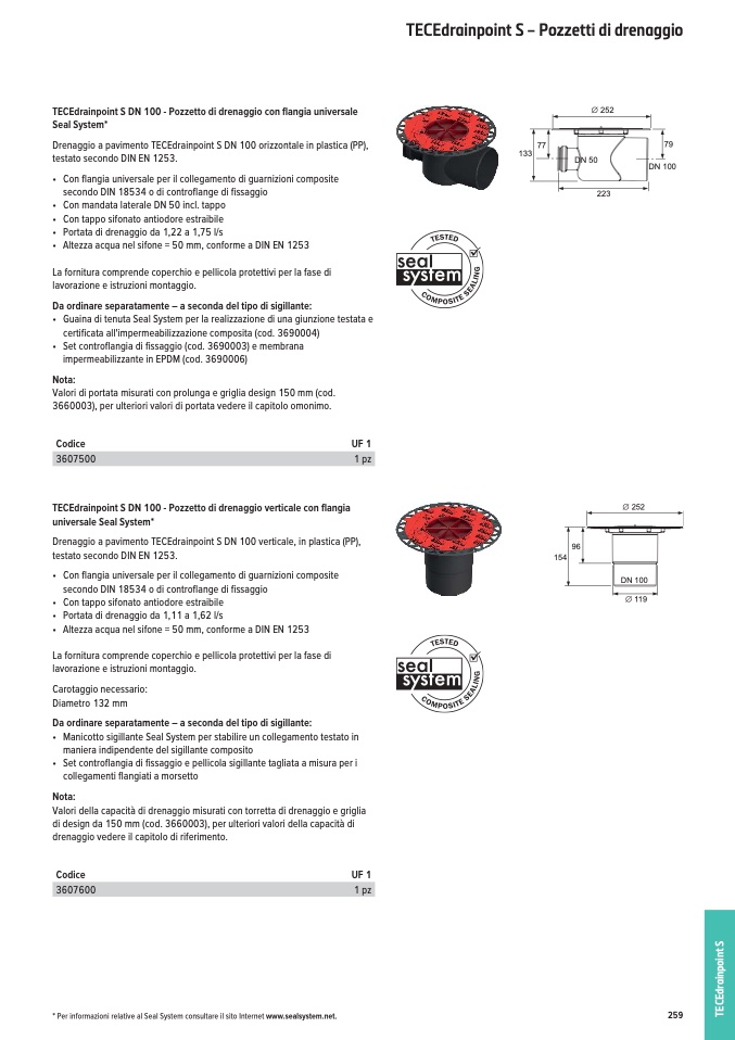 * Per informazioni relative al Seal System consultare il sito Internet www.sealsystem.net.