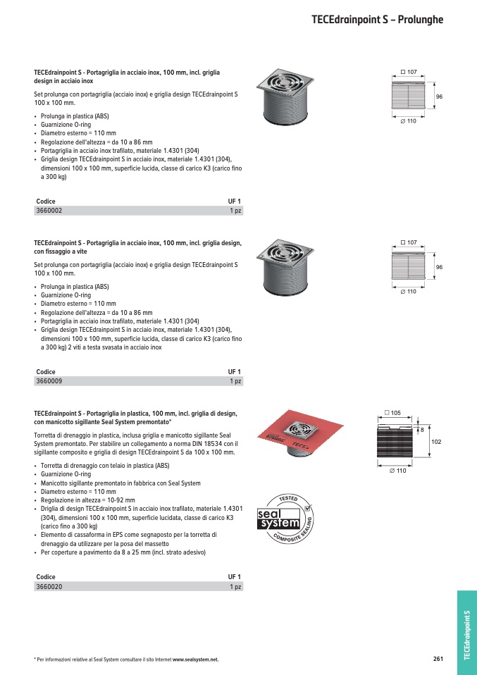 * Per informazioni relative al Seal System consultare il sito Internet www.sealsystem.net.