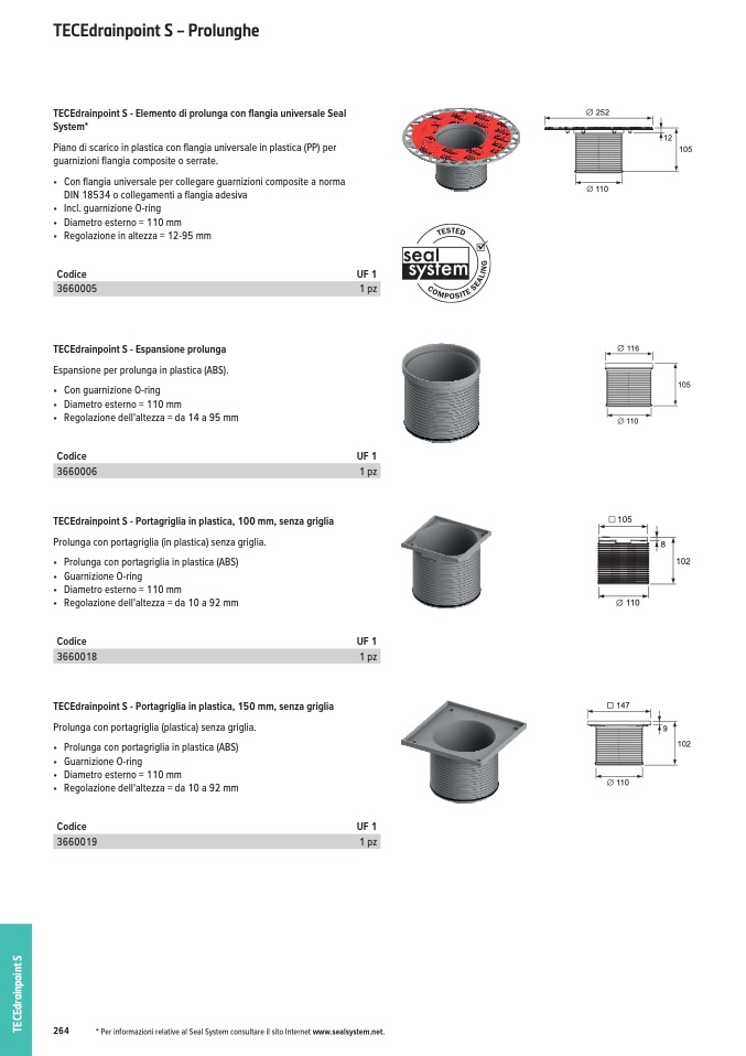 TECEdrainpoint S - Elemento di prolunga con flangia universale Seal