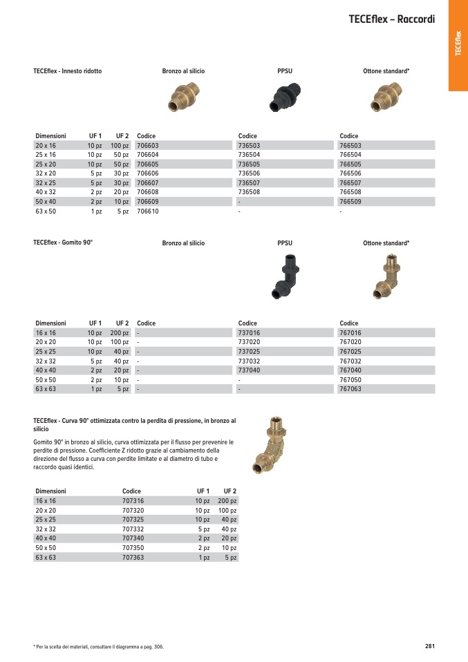 * Per la scelta dei materiali, consultare il diagramma a pag. 306.
