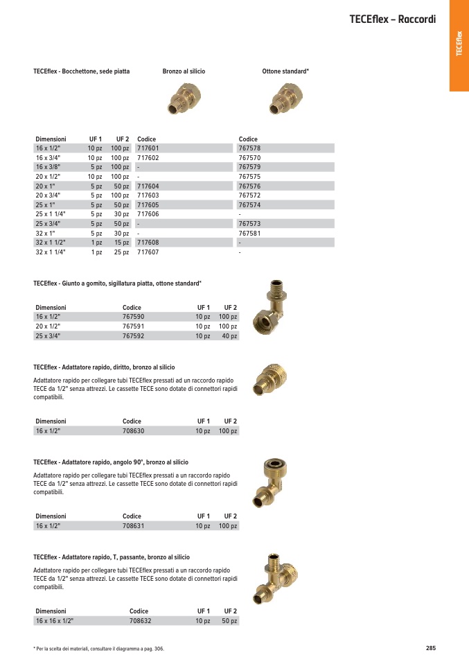 * Per la scelta dei materiali, consultare il diagramma a pag. 306.