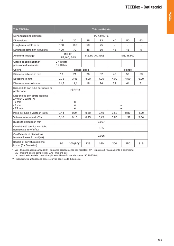 La classificazione delle classi di applicazioni è conforme alla norma IS0 10508[4].