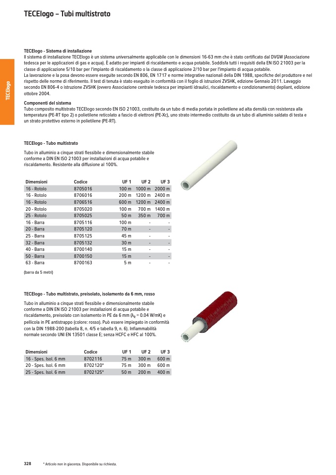 TECElogo - Tubo multistrato, preisolato, isolamento da 6 mm, rosso