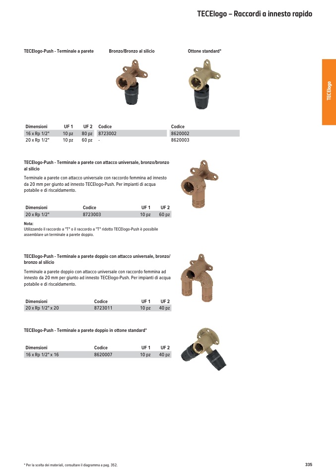 * Per la scelta dei materiali, consultare il diagramma a pag. 352.