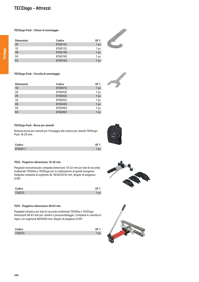 Piegatubi idraulica per tubi di raccordo multistrato TECEflex e TECElogo