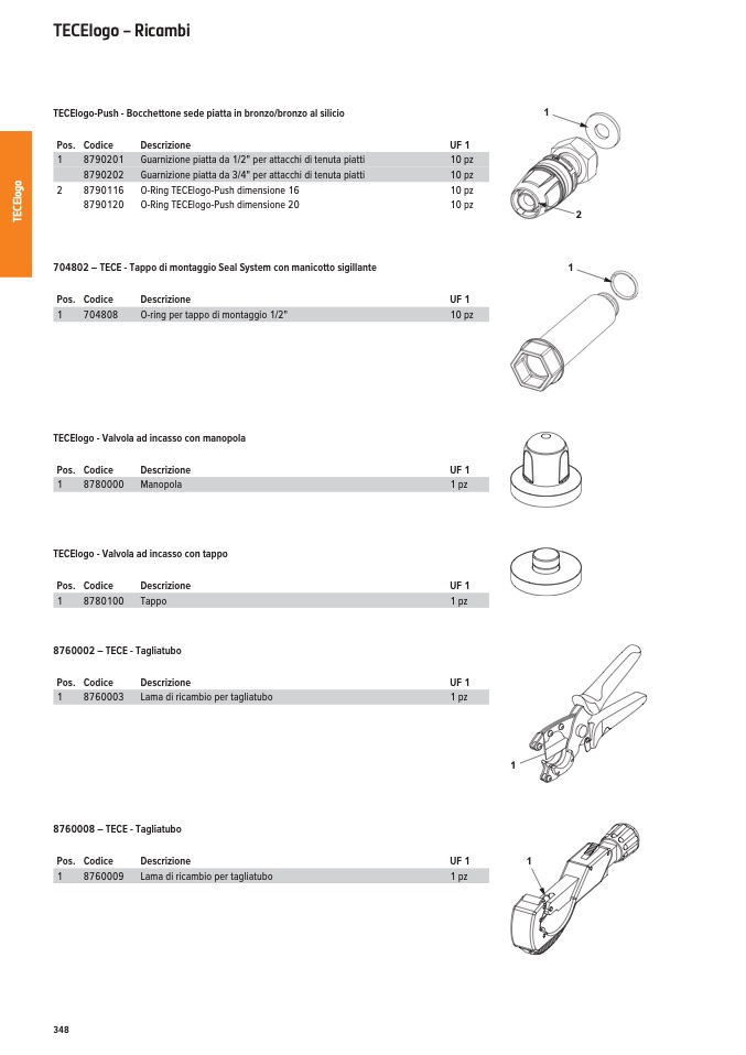TECElogo-Push - Bocchettone sede piatta in bronzo/bronzo al silicio