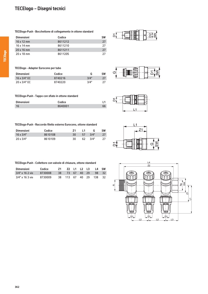 TECElogo-Push - Bocchettone di collegamento in ottone standard