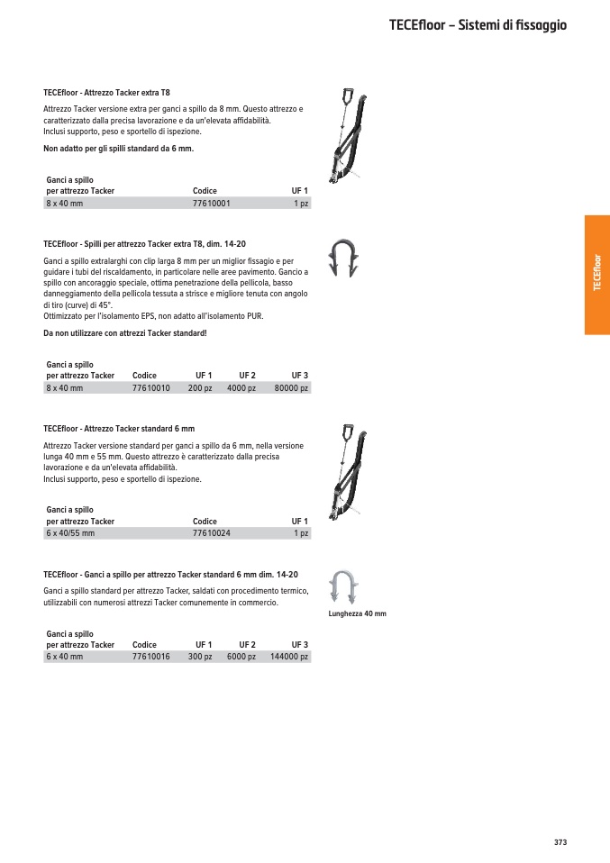 TECEfloor - Ganci a spillo per attrezzo Tacker standard 6 mm dim. 14-20