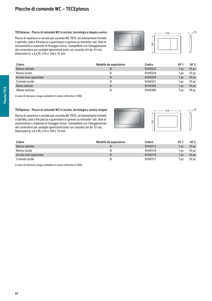 Placca di copertura in acciaio per cassetta WC TECE, ad azionamento frontale