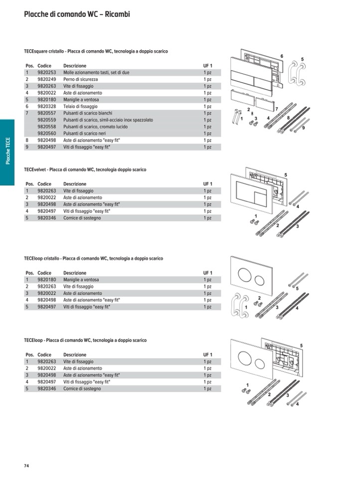 TECEvelvet - Placca di comando WC, tecnologia doppio scarico