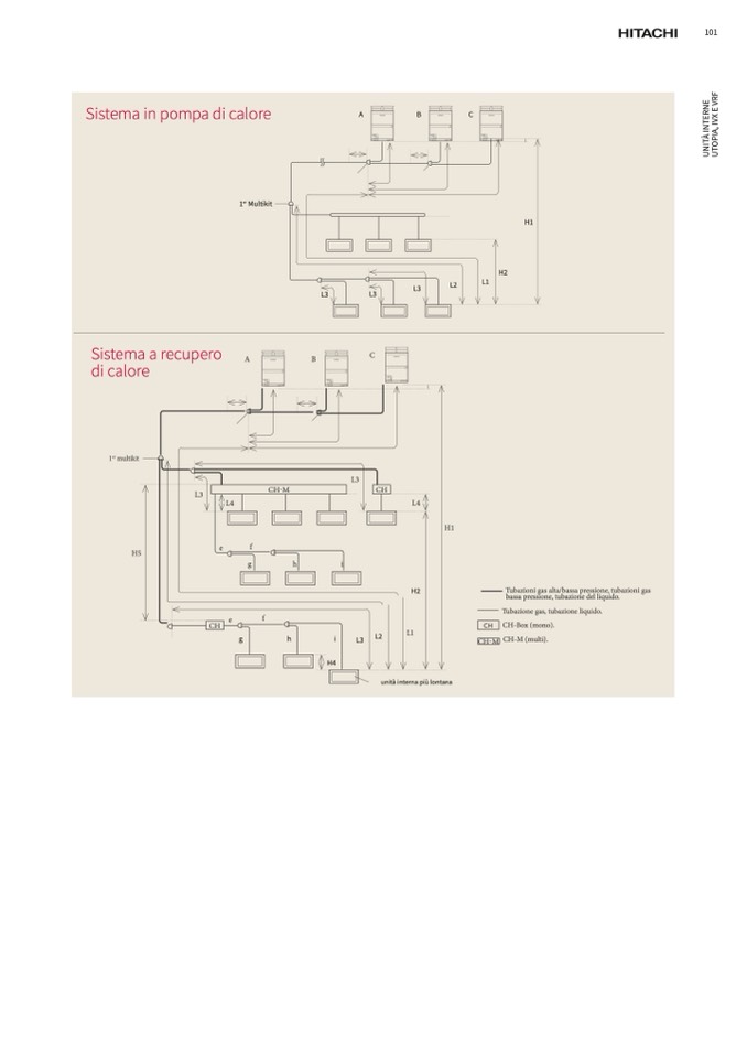 Tubazione gas, tubazione liquido.