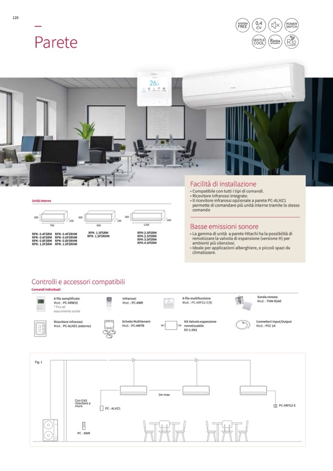 • La gamma di unità a parete Hitachi ha la possibilità di