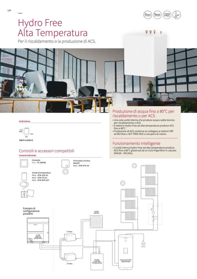 • L'unità interna Hydro Free ad alta temperatura produce