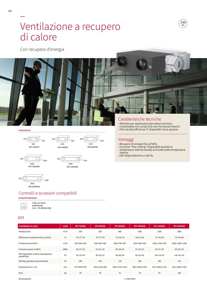 • ESP disponibile fino a 240 Pa.