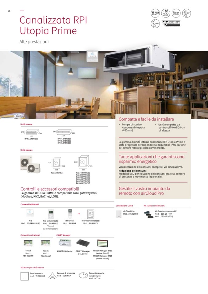 La gamma di unità interne canalizzate RPI Utopia Prime è