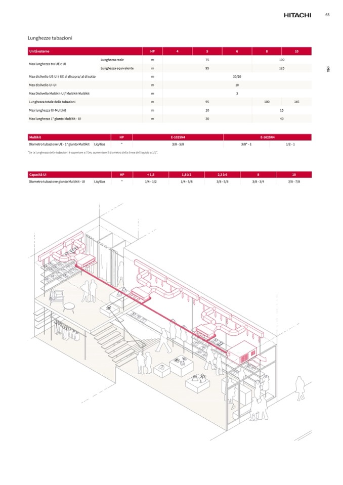 è superiore a 70m, aumentare il diametro della linea del liquido a 1/2”.