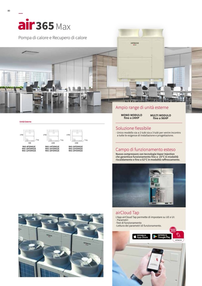 riscaldamento e fino a 52°C in modalità raffrescamento.