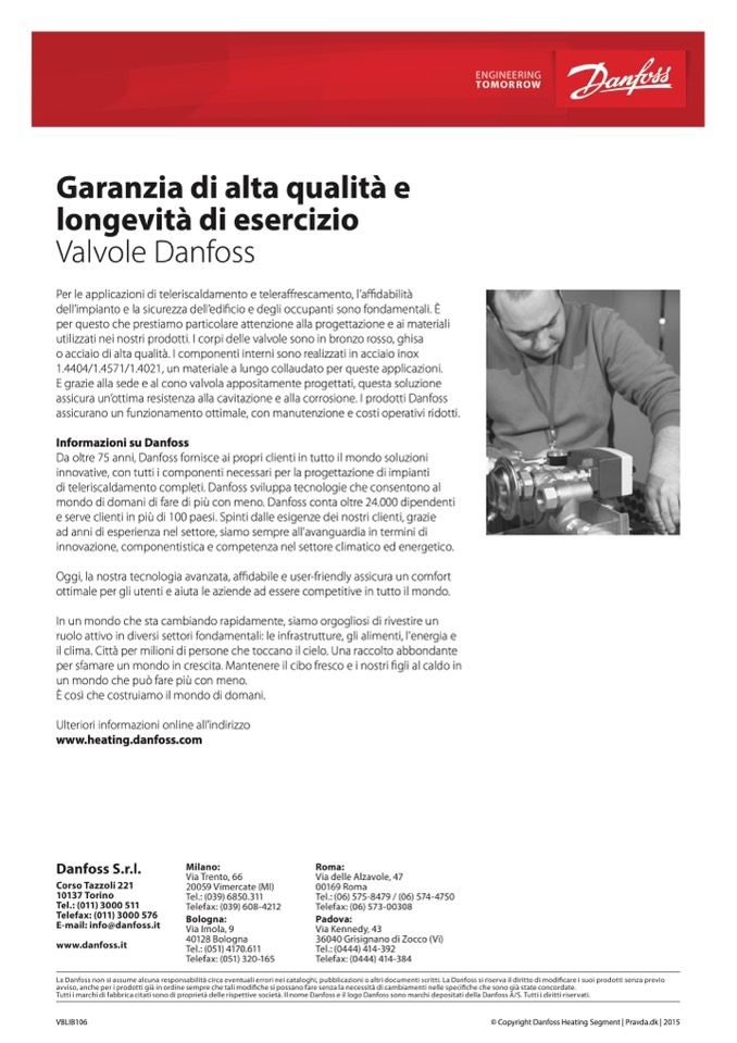 di teleriscaldamento completi. Danfoss sviluppa tecnologie che consentono al