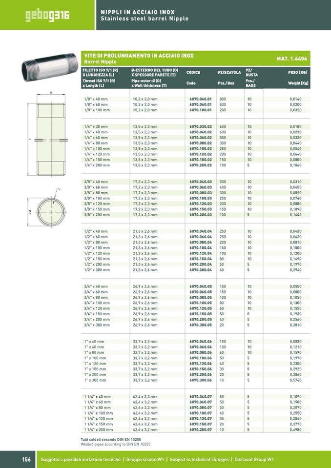 Tubi saldati secondo DIN EN 10255