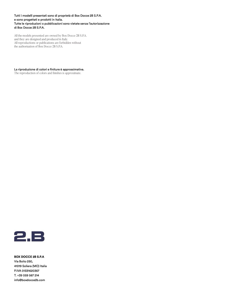 Tutti i modelli presentati sono di proprietà di Box Docce 2B S.P.A.