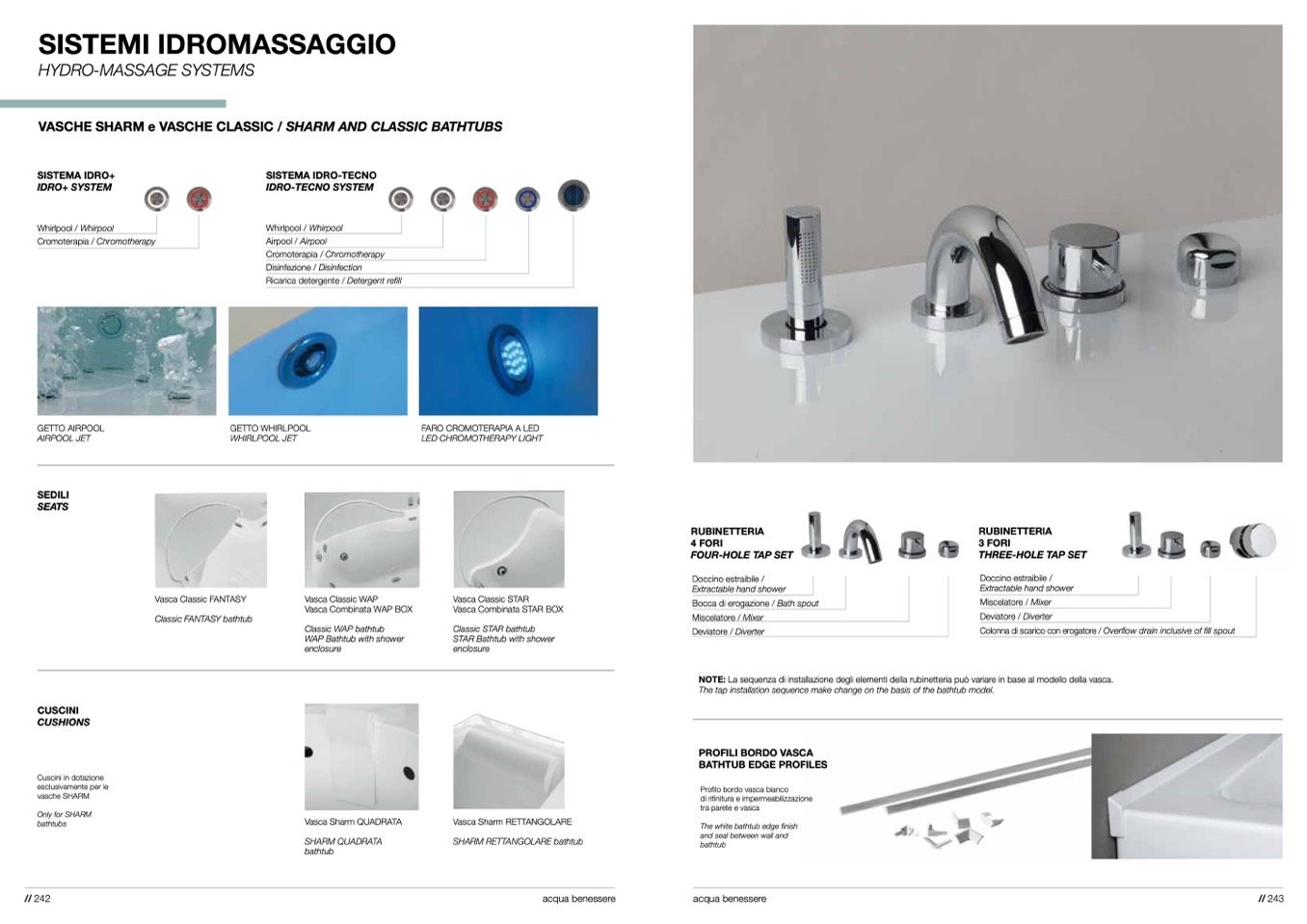 NOTE: La sequenza di installazione degli elementi della rubinetteria può variare in base al modello della vasca.