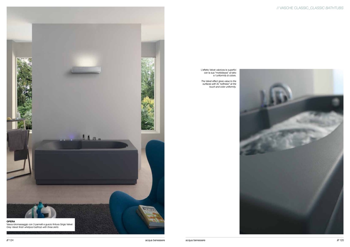 Vasca idromassaggio con 3 pannelli e guscio finitura Grigio Velvet