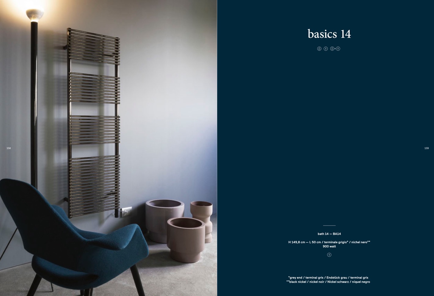 H 149,8 cm — L 50 cm / terminale grigio* / nichel nero**