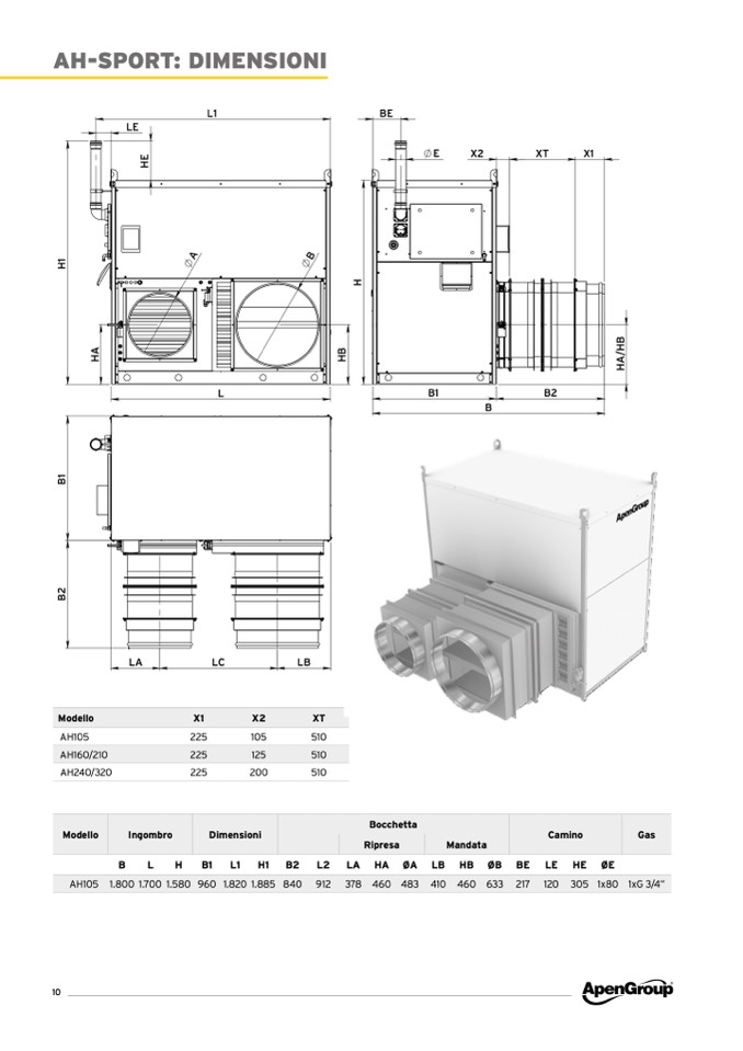 AH105 1.800 1.700 1.580 960 1.820 1.885 840 912 378 460 483 410 460 633 217 120 305 1x80 1xG 3/4”