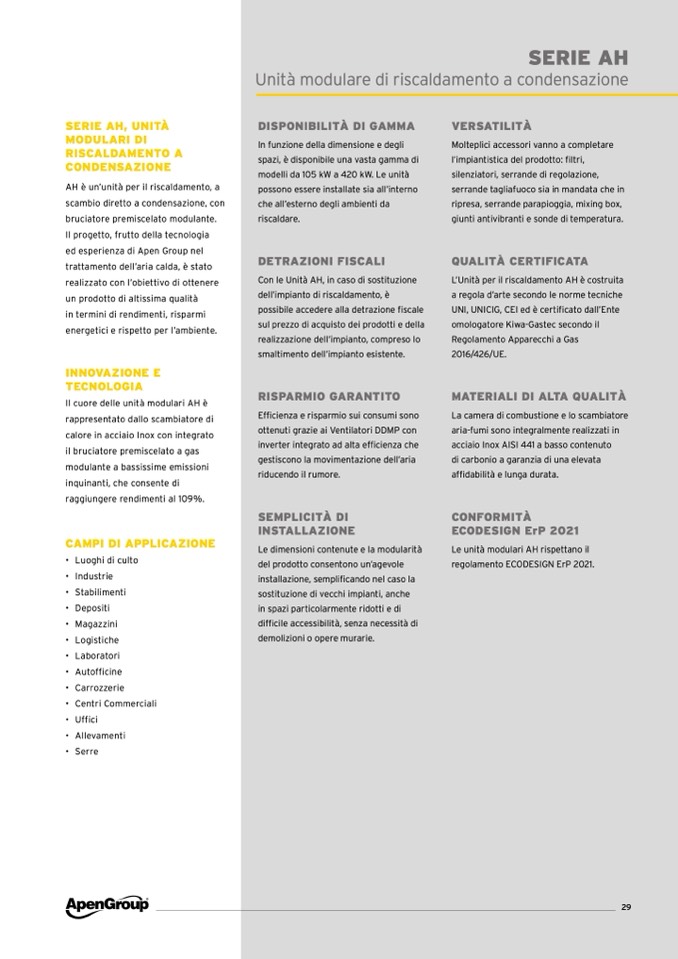Le unità modulari AH rispettano il