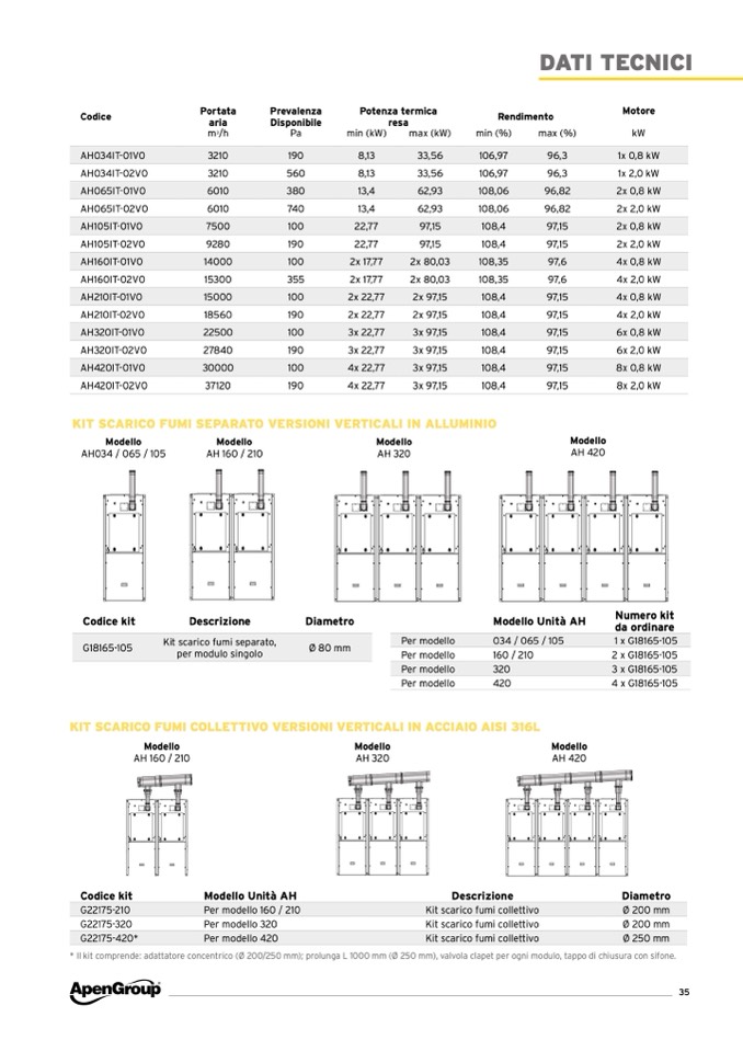 KIT SCARICO FUMI COLLETTIVO VERSIONI VERTICALI IN ACCIAIO AISI 316L