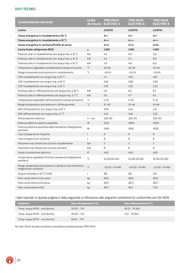 Per dati riferiti ad altre condizioni consultare la scheda tecnica TRIO PACK.