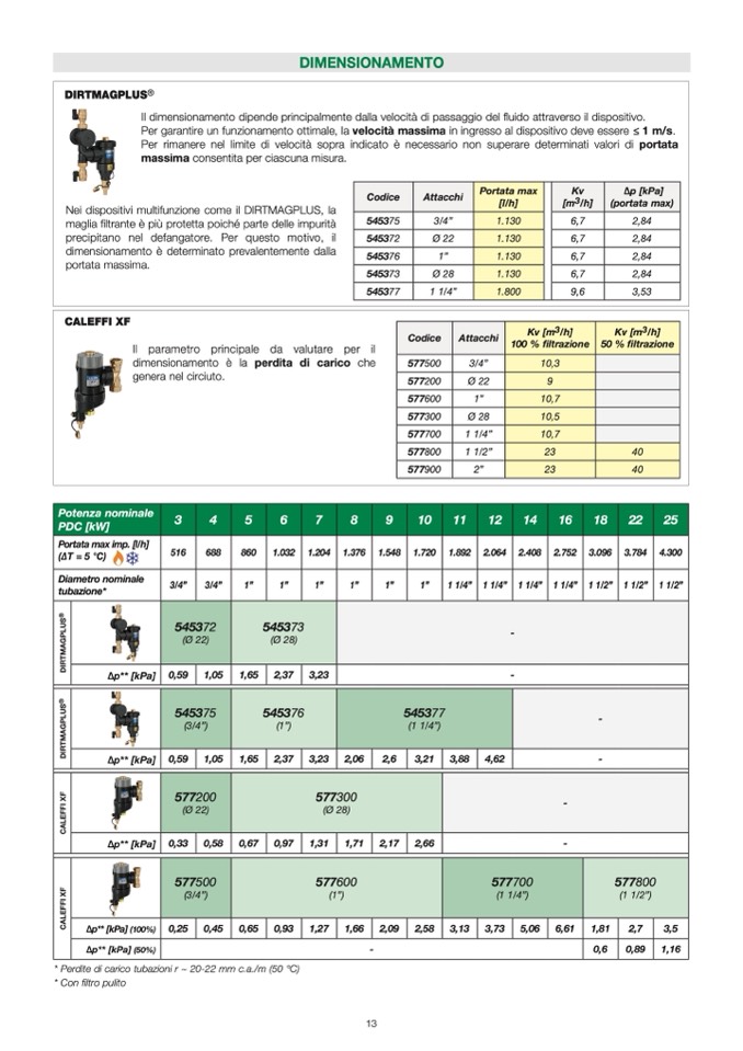 Il dimensionamento dipende principalmente dalla velocità di passaggio del fluido attraverso il dispositivo