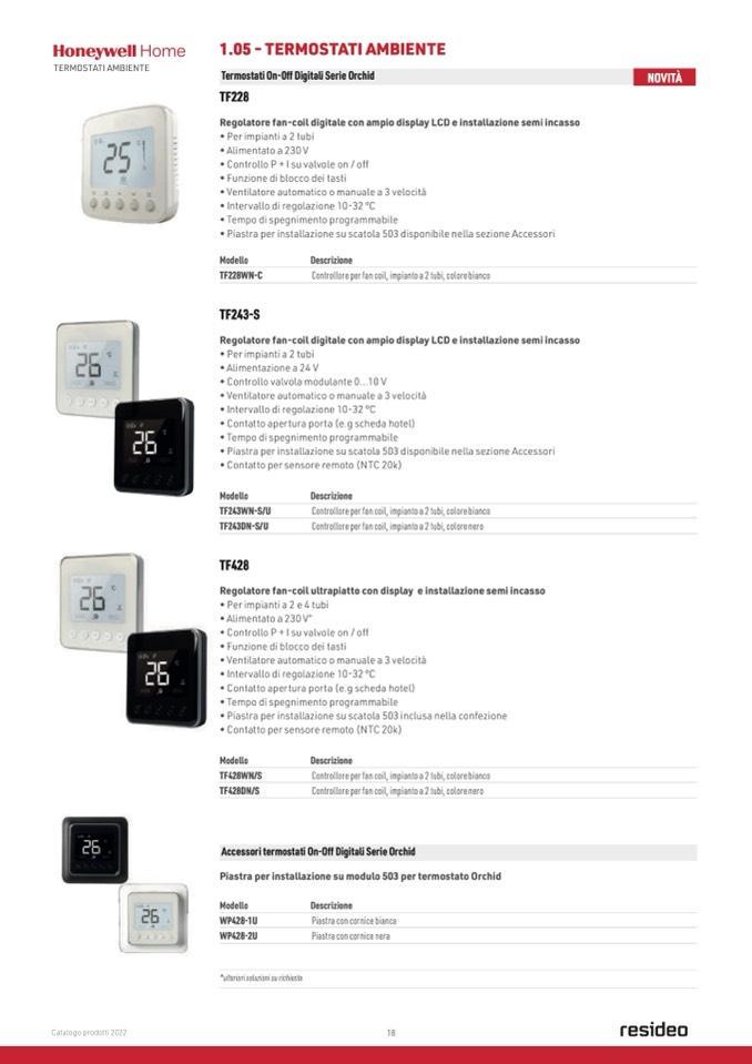 Regolatore fan-coil ultrapiatto con display e installazione semi incasso