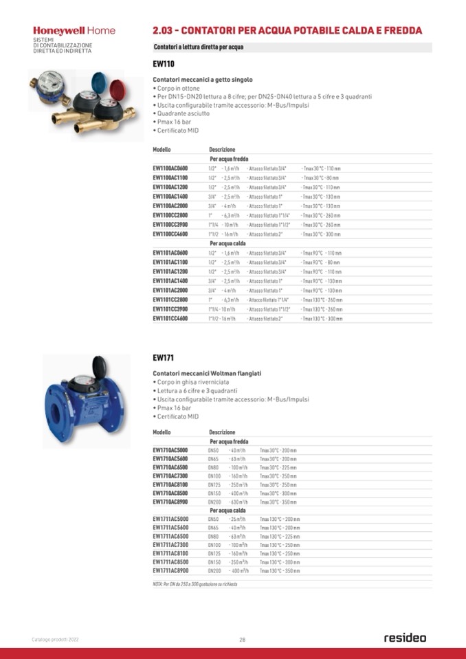 • Per DN15-DN20 lettura a 8 cifre; per DN25-DN40 lettura a 5 cifre e 3 quadranti