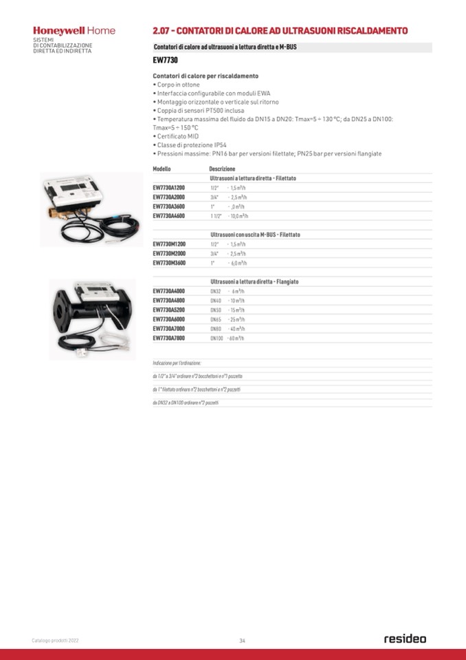 Contatori di calore ad ultrasuoni a lettura diretta e M-BUS