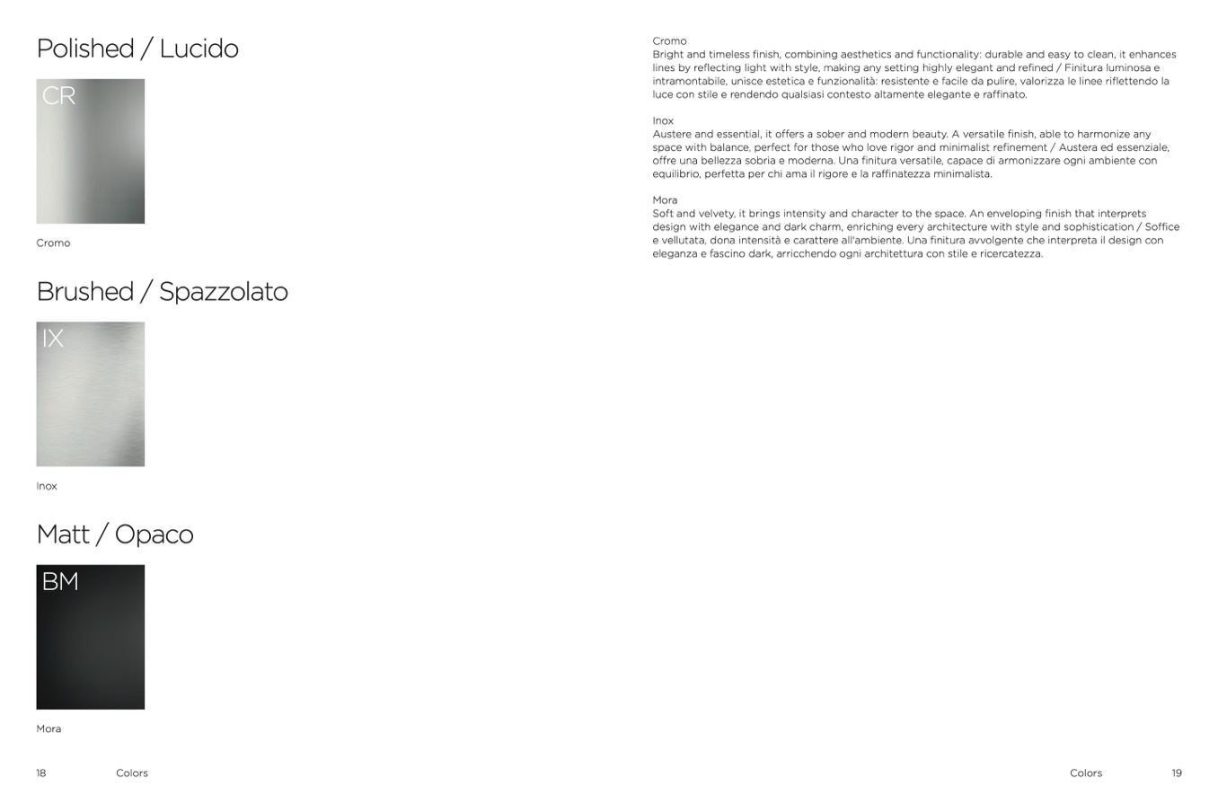 lines by reflecting light with style, making any setting highly elegant and refined / Finitura luminosa